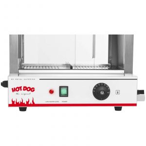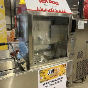 Le cuiseur à vapeur hot-dogs en acier inoxydable ( 2000 W ) d' une capacité de 200 saucisses et 50 petits pain peut à la fois chauffer et garder au chaud à une température optimale de